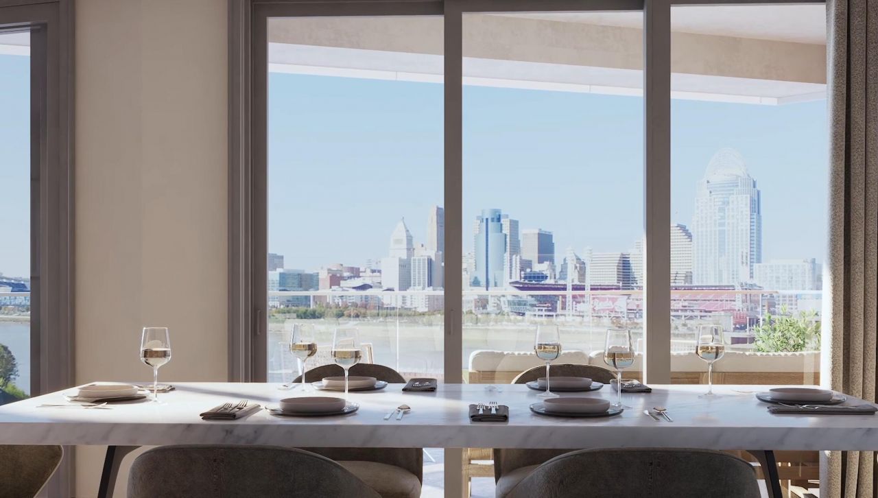 The Boardwalk Residences at Ovation feature 88 premier luxury condominium homes across 3 buildings situated along the Northern Kentucky riverfront. These exceptional residences provide unparalleled, panoramic views of the Cincinnati skyline and the Ohio and Licking Rivers, seamlessly blending the serenity of a private enclave with the vibrancy of an active urban lifestyle. Designed for single-level living, each home includes 2 bedrooms, 2 bathrooms, and an open-concept layout focused on comfort and sophistication. Kitchens feature upscale brands Sub Zero, Wolf and Asko appliances with smart technology. Floor plans are designed to highlight...read more