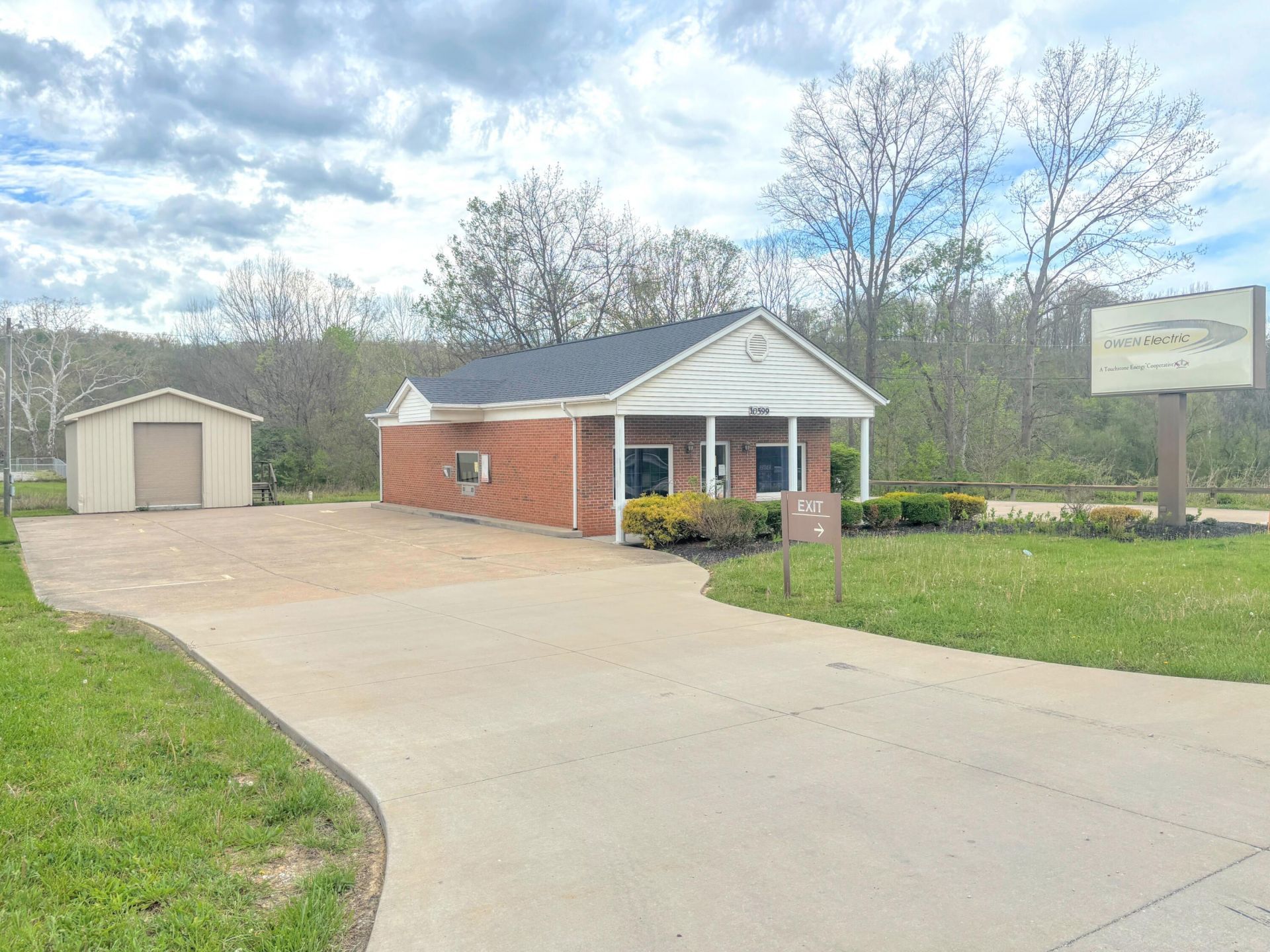 Looking for that Perfect Spot for Your Business - This May Just be It! Solid Full Brick Building with Drive Thru Access - Plenty of Easy Accessible Parking - Detached Building for Storage - Was Used for Owen Electric Office - Lobby, Large Bull Pen Style Office Space w. Access to Drive Thru*Separate Office*Kitchen/Break Room Area*Bath*Geothermal Heat*Zoned Business (B) Zoning*Commercial, Retail, Services Inc Stores/Shops*Day Care - Churches - & Others! High Visibility & Easy Access - All Interior Furnishings Stay with the Property (Desks/Work Spaces/Kitchen Items) Great Opportunity!