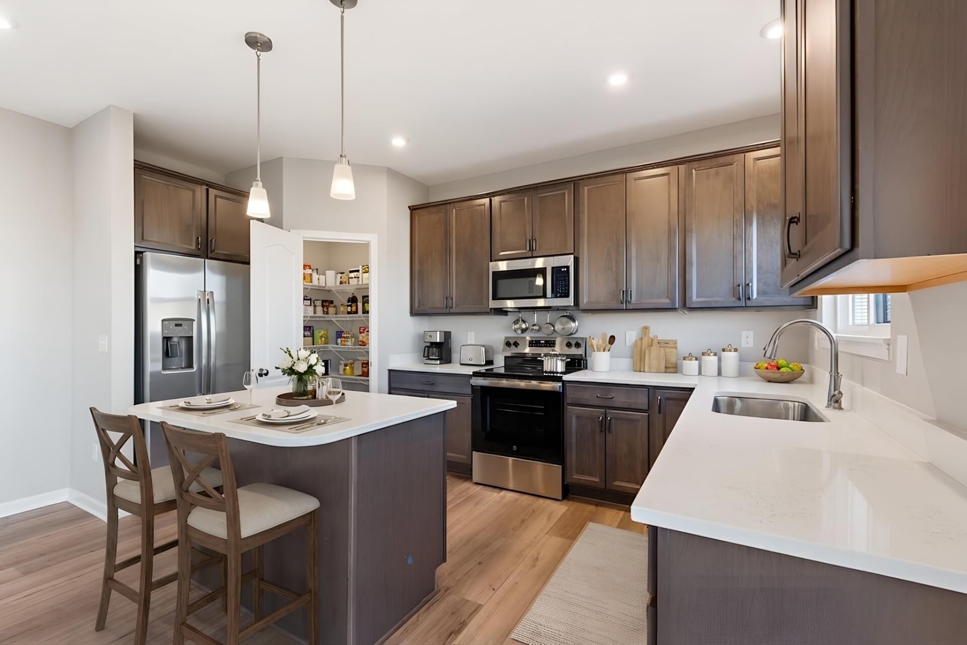 New construction by Fischer Homes in the beautiful community of Greenbrook, featuring the stunning Yosemite plan. This designer floorplan offers an open-concept kitchen with island, pantry, lots of cabinet space and premium quartz countertops. Spacious family room expands to light-filled morning room. Private study off of entry foyer. Upstairs owners suite with attached private bath featuring dual vanity sinks, walk-in shower, and oversized walk-in closet. Two additional bedrooms, large loft, hall bath, and convenient second floor laundry room. Full unfinished basement with full bath rough in. Attached two car garage.