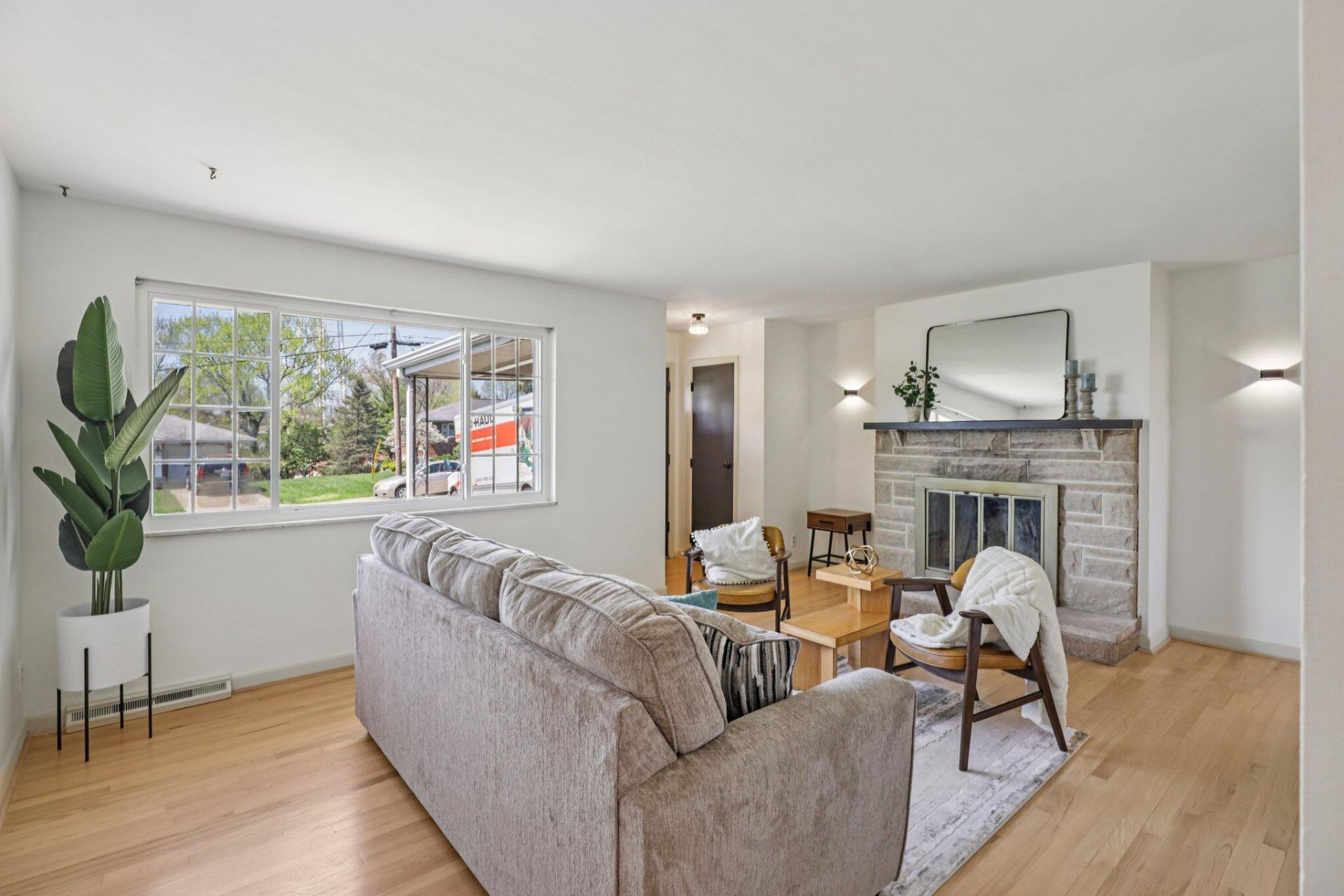 Beautiful mid-century ranch on 0.43 acres, tucked on a cul-de-sac in Fort Thomas!This move-in ready home blends timeless character with thoughtful modern updates throughout. The main level features beautifully refinished hardwood floors, fresh designer paint scheme, and a welcoming living room with fireplace.The flexible floor plan offers three bedrooms upstairs. The updated full bath showcases stylish tilework, a large tub, modern finishes, and elegant gold fixtures.The kitchen combines charm and functionality with quartz countertops, stainless steel appliances, classic wood cabinetry with updated hardware, statement tile flooring, a large...read more