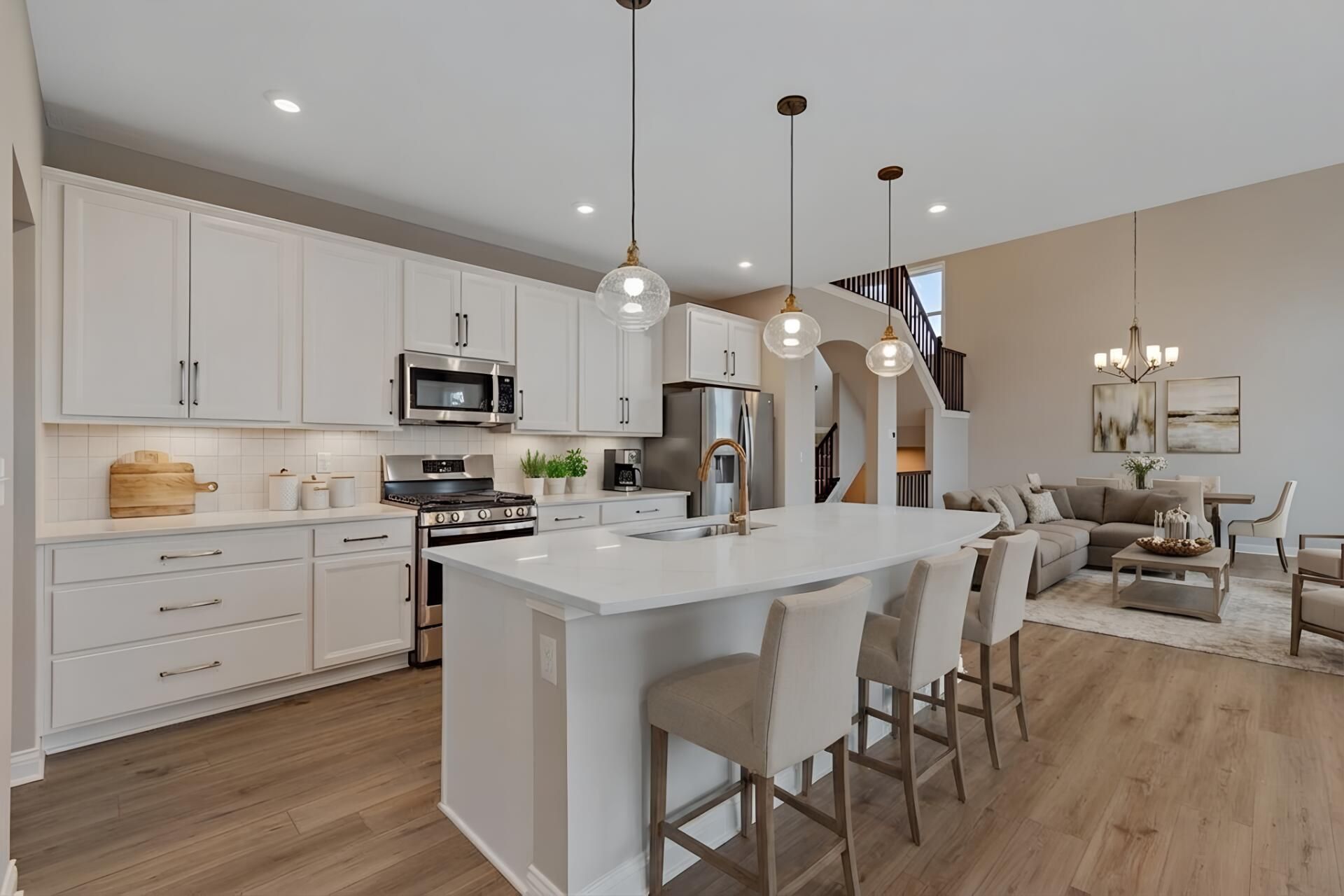 Stunning new Grandin plan by Fischer Homes in beautiful Reserve at Meadowood featuring a welcoming covered front porch. Once inside youll find a private study with double doors. Fall in love with the wide open concept design with an island kitchen with stainless steel appliances, upgraded cabinetry with 42 inch uppers and soft close hinges, durable quartz counters, large pantry and a breakfast room that walks out to the 16x14 deck, and all open to the dramatic 2-story family room. Casual living room just off the kitchen could function as a formal dining room. Oversized upstairs primary suite with an en suite that includes a double bowl vanity,...read more