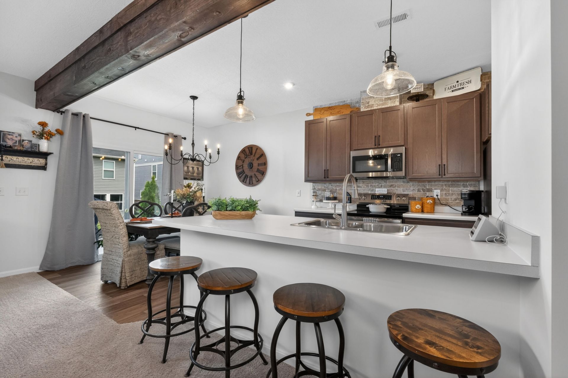 Why wait to build when this one is already done (and way cuter)? This one-year-old Hudson model paired patio home is truly better than new--with the upgrades and charm you actually want, already finished.Inside, youll love the open layout with a statement wood beam that gives the living room and kitchen that cozy, custom feel. The kitchen is a total win with a huge island with seating, a brick-look backsplash, and space that just works whether youre hosting or surviving a busy weeknight.Upstairs offers 3 bedrooms, a loft area and 2.5 baths with a layout that makes everyday life easy. Out back, youve got your own patio--perfect for morning...read more