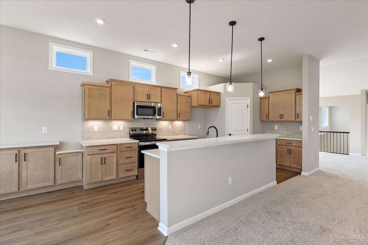 Gorgeous new Northport II plan by Fischer Homes in beautiful Majors at Shaker Run offers a private study with double doors. Penthouse style living and an open concept design with an island kitchen with stainless steel appliances, upgraded cabinetry with soft close hinges, gleaming granite counters, walk-in pantry, walk-out morning room to the covered deck and all open to the large family room. Private study with double doors. Formal dining room with bay window is just off the kitchen. Primary suite with an en suite that includes a double bowl vanity, soaking tub, separate shower and 3 closets 2 being walk-ins. 2nd bedroom with attached full...read more